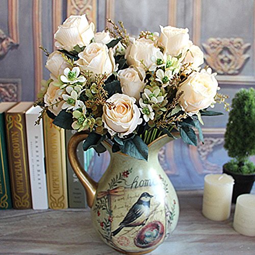 Soledi美しいEarlローズブーケCharming DelightfulシルクFlower Arrangement Large Palaceローズ人工花ホテルウェディングホーム装飾花 ホワイト LSD-47619_5