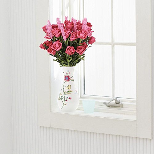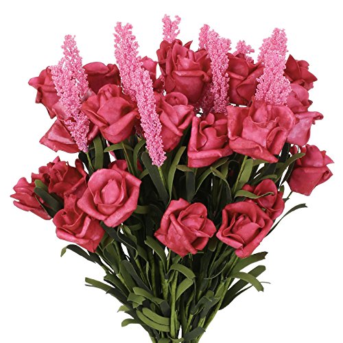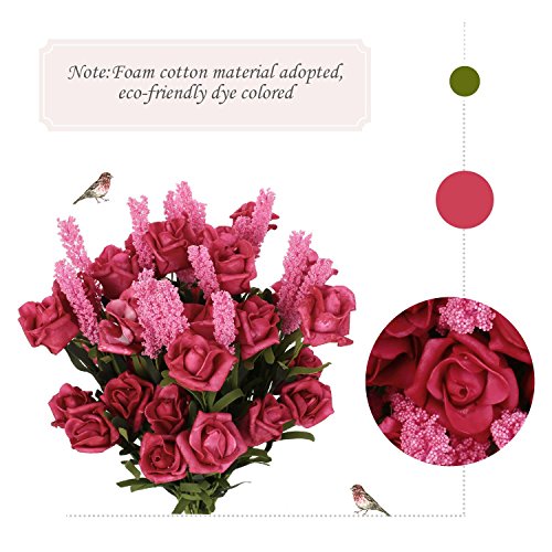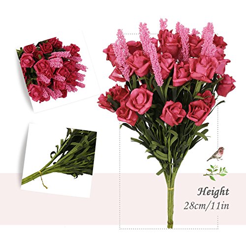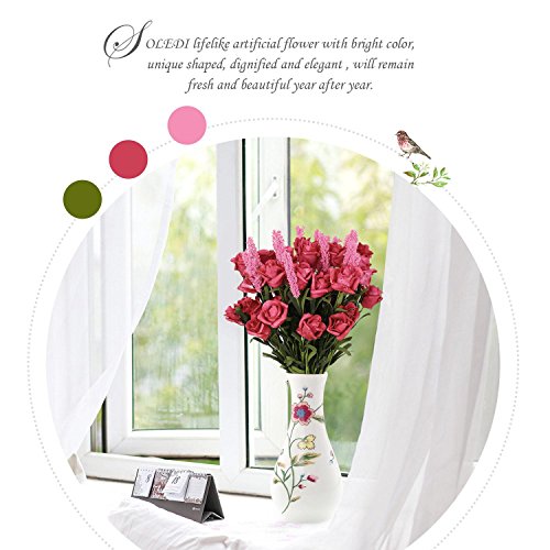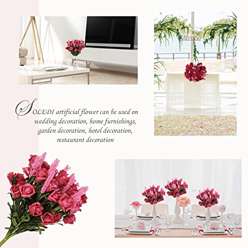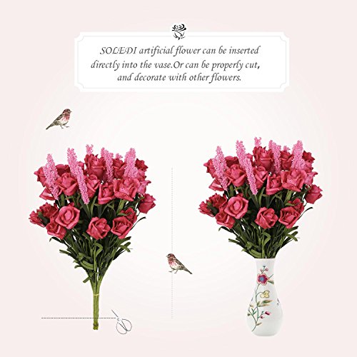 (ソレディ) SOLEDシルクフラワーアレンジメント 人工ブーケ 9ヘッド ロールハートローズ/ラベンダー 結婚式/ホームガーデンの装飾に 5束(45本の花) レッド Artificial Flowers F33