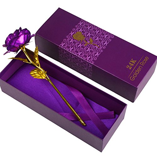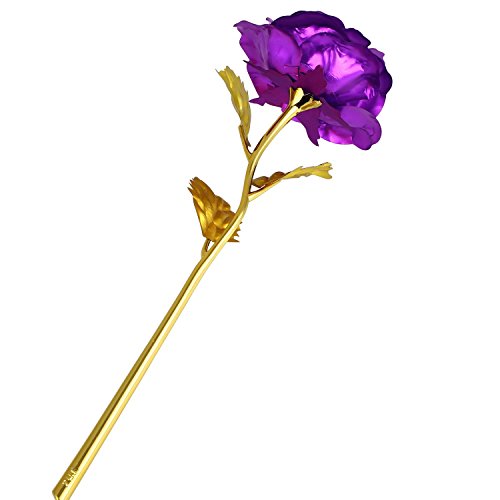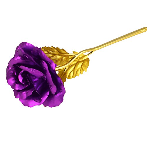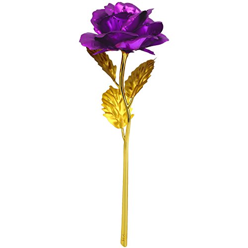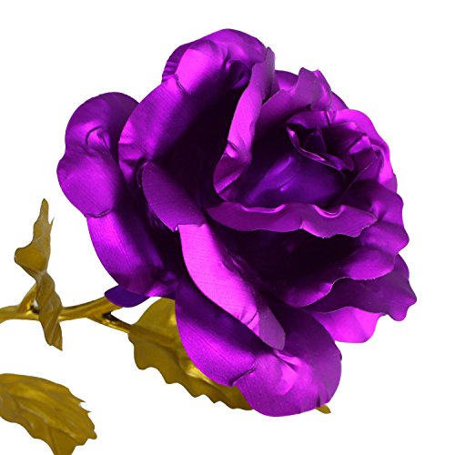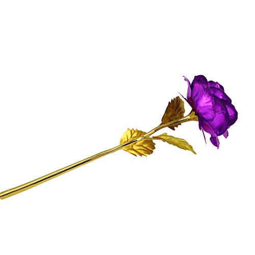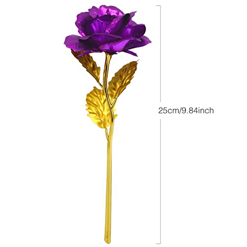 Solediゴールドローズ24 Kゴールドローズ花BEST FOR THEバレンタインの日、母の日、誕生日、結婚式典の証明書付きand Free Luxuryギフトパッケージ パープル 11