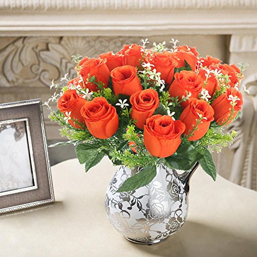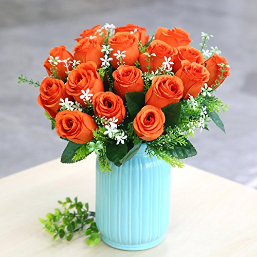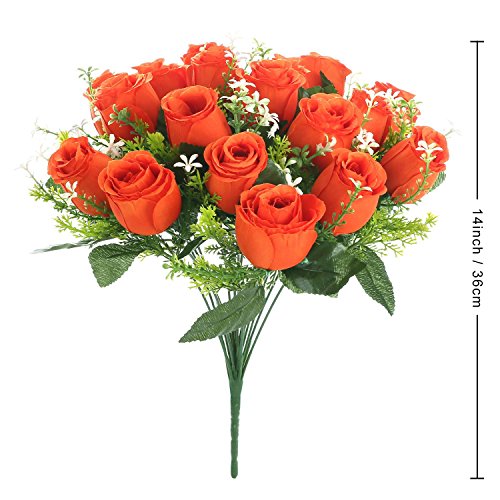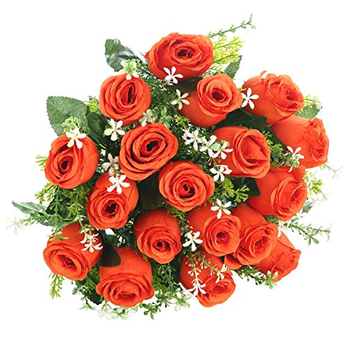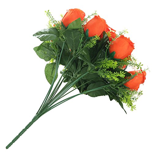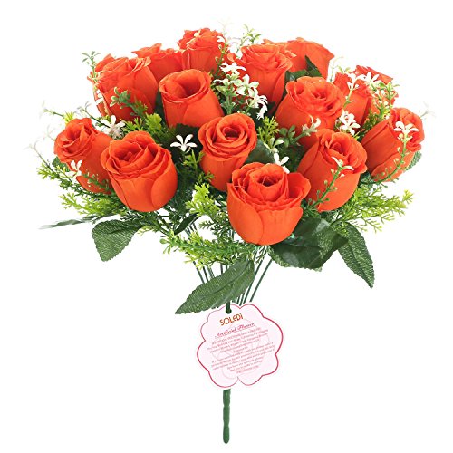 Soledi人工花18 Headsソリッド色シミュレーションバラ芽の結婚式ホームデコレーション オレンジ