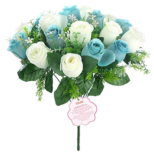 Soledi人工花18 Heads Mixカラーシミュレーションバラ芽の結婚式ホームデコレーション