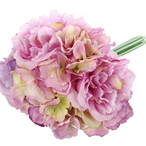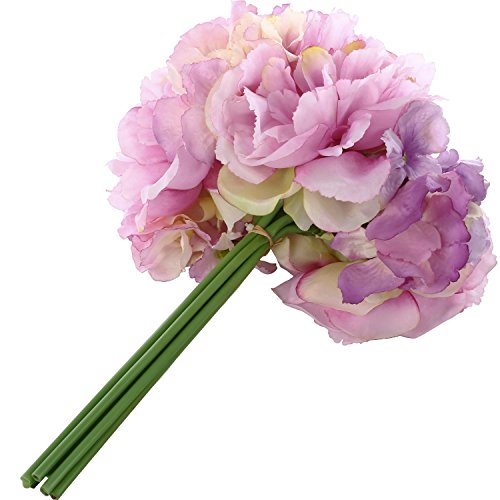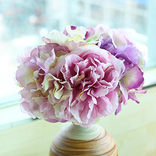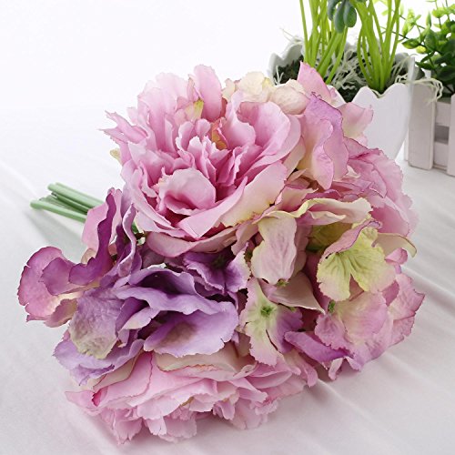 Soledi 造花 牡丹 ボタン 花嫁花束 ブーケ 1束7個花アジサイ 結婚式 パーティー用 飾り インテリア DIY アレンジ (パープル)