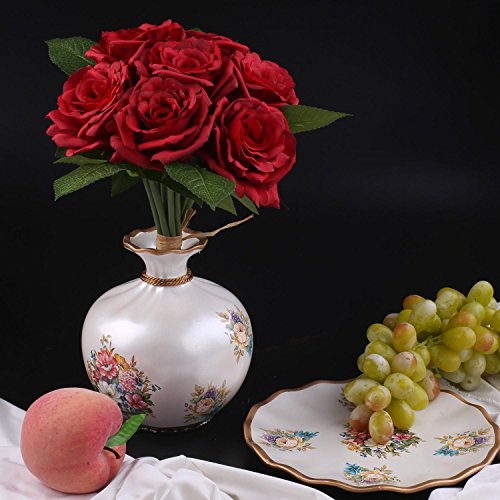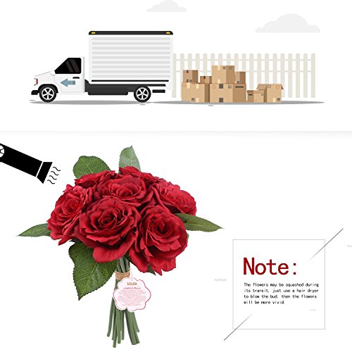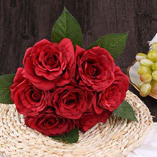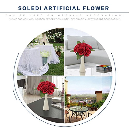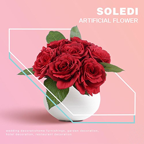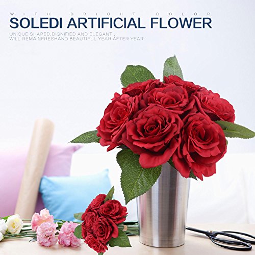 Soledi人工花7ヘッドHand Drawn Artistic Roses Forウェディングホームバー装飾 レッド AF42