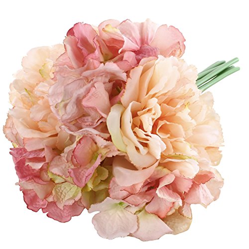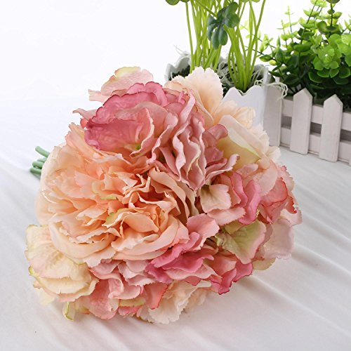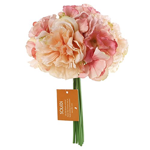 Soledi 造花 牡丹 ボタン 花嫁花束 ブーケ 1束7個花アジサイ 結婚式 パーティー用 飾り インテリア DIY アレンジ (ピンク)