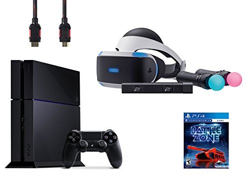 Includes: VR headset, Processor unit, VR headset connection cable, HDMI cable, USB cable, Stereo headphones, AC power cord, AC adaptor, PlayStation VR Demo Disc, PlayStation Camera, 2 PlayStation Move motion controllers, and PlayStation4 and VR game disc PSVR Battlezone - PlayStation 4