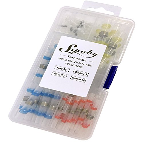 100pcs Wire Connector, Sopoby Solder Seal Heat Shrink Electrical Butt Connectors Terminals Kit Insulated Marine Waterproof Automotive Copper With Case(35Red 30Blue 25White 10Yellow) [並行輸入品]