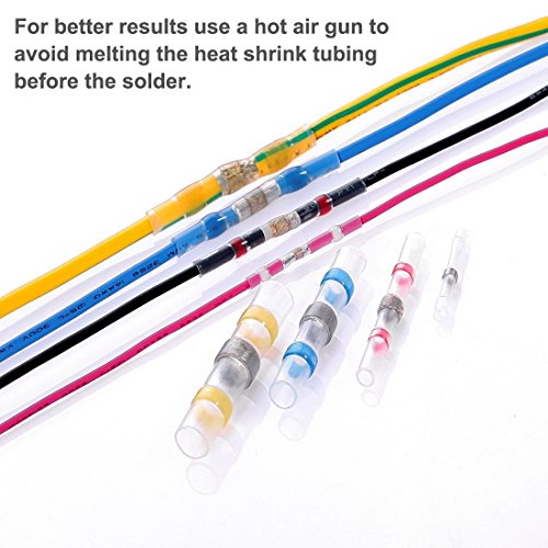 - No Slip Wire Contact - Tubing reduces in size and solder will melt and flow through the stripped wires, ensure strong holding --- your wire will never slip out of the connector. Can be ideal used in marine and automobile applications
