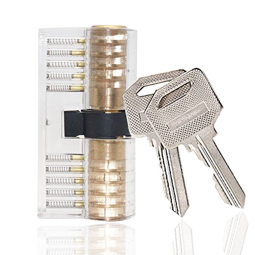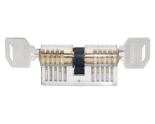 1パック透明練習ロック、sopobyクリスタルVisible CutawayトレーニングロックPick forロックスミス、円柱ロック2キーと
