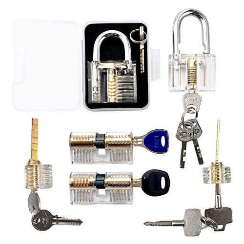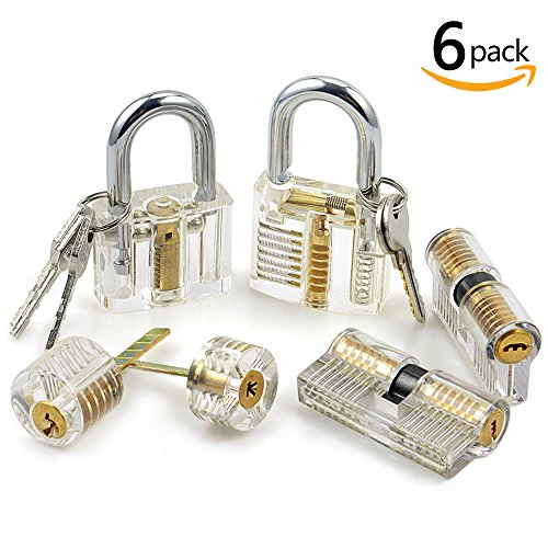 6 Pcsピックロックセット、sopoby透明練習キット、Visible Cutawayドアロックロックスミス初心者用withキー