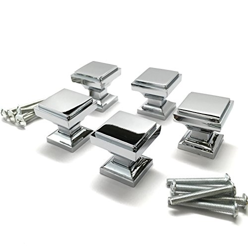 Southern Hills光沢クロムスクエアキャビネットノブキッチンキャビネット – 5パック、ノブ、クロムキャビネットハードウェア、引き出しノブ、ポリッシュクローム、食器棚ノブshkm002-chr-5