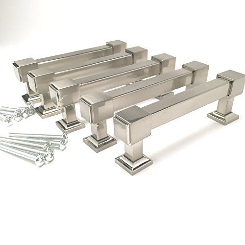 Southern Hillsつや消しニッケルキッチンキャビネット引き出しPulls、4インチねじ間隔、5のハンドルの(パック)、サテンニッケルPulls shkm010-sn-5