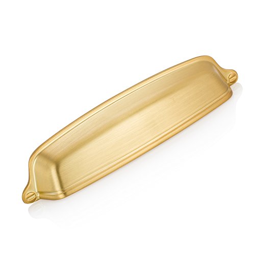 Southern HillsサテンゴールドカップPulls – 5インチねじ間隔 – 6 1 / 4インチ合計長 – キャビネット引き出しPulls – Bin Pulls – ブラシ仕上げゴールドハンドル – Pack of 5 – shkm004-gld-5