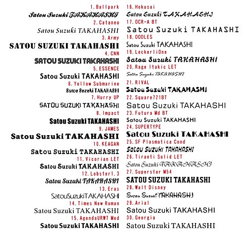 - 日本語24書体・英語26書体 耐用年数5年以上のシートを使用