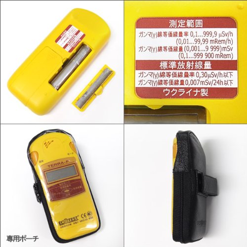 ◆2015年製以降の最新・長期保証品◆お届け品の構成:機器本体、取扱説明書兼保証書(英文)、日本語取扱説明書、特製レザーケース、単4形乾電池2本(内蔵)、格納ケース・箱◆高性能ながら軽量ハンディサイズ(2つのボタンだけの簡単操作)◆用途:通勤・通学路、校庭、園庭、自宅周辺の道路、建築物、地表面、車両、大気中などの放射線汚染測定器としてお使いいただけます。◆「累積線量」の表示が可能ですので合計でどれだけの放射線を浴びたかを計測することが可能です。◆約6000時間電池交換無しで稼動するため、スイッチを入れたまま放射線の常時監視が可能です。◆製造メーカーであるSparing-Vist Center社(スパーリング・ビスト・センター)は、ウクライナで発生した チェルノブイリ原発事故に対応していたウクライナ軍の放射線エンジニアが独立し、1992年に創業した放射線測定器 の専門 メーカーです。同社の製品は現在約60ヵ国に輸出されています。◆小型軽量でハンディタイプの測定器であり ながら、空間線量・積算線量・表面汚染の判別などに活用できます。◆メーカー保証により無償で修理を受けることが可能です。◆当店で機器をお預かりした場合、当店より代替機としてTERRAシリーズの機器を無料にて貸出しが可能です。(送料はご負担ください。)