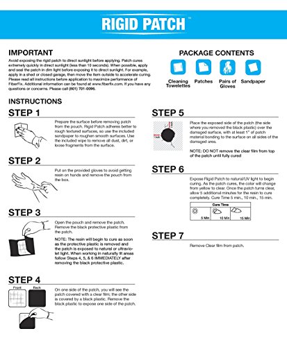 FiberFix組み合わせ耐久性に富んファイバーとなどの専用の樹脂は修復パッチになり固くsteelforフラット表面の修復。上にパッチを置きだけで簡単に破損、サーフェスでの施術を直射日光やUV懐中電灯、お客様の商品は修復された内5 – 15分に設定されています。dont FiberFix交換してください。FiberFixリジッドパッチは包装できないオブジェクトの完全に壊れた家庭を修復、アウトドアに使用します。Rigidパッチはは3つの異なるサイズがあり、簡単な操作で、パッチのさまざまなダメージオブジェクトとサーフェスを作成する確定して、隙間のない, hard-as-steel修理ができます。修復する国のアリスをfiberfoxとされている点に注目してください。3 Pack UVリジッドパッチでは2 " X 8 ", 3 " X 3 ", 5 " X 5 "、を使用しており、ほぼどのような表面にタイトに使いやすい水溢れUVパッチで自然光、クイック丈夫で強度を誇り、EVER固定強度は、UVパッチをファイバー使用する平らな面はクリーニングウェットティッシュ、パッチサンドペーパー、手袋& FiberFixリジッドパッチ使用して、屋外で完全に壊れた家庭を修復、していないオブジェクトのリジッドパッチはラップ来るは3つの異なるサイズがあり、簡単な操作で、パッチのさまざまなダメージオブジェクトとサーフェスを作成する確定して、隙間のない, hard-as-steel修理を修復する国のアリスをfiberfoxとされている点に注目してください。