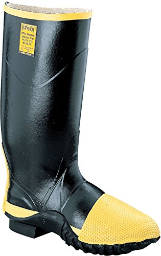 Ultra-composite shanks reinforce construction and support the arch. Ranger's Turtleback full metatarsal guard rubber boots act as armoblack foot protection providing a barrier to hazards on all sides. Knurled, high-abrasion metatarsal and heel overlays for longer service. Outsoles are high-abrasion rubber for durability and longer wear. Specialized compound prevents ozone deterioration. Anchoblack metatarsal guard. Heavy Trac Tread sole and heel. SAFE-STEP puncture-resistant steel midsoles for maximum protection under foot. FOOT FORM contour cushion insoles. Ultra-composite shanks reinforce construction and support the arch. Steel toe, metatarsal guard and steel midsole meet ASTM F2413-05. Available in black color and men's size-8.