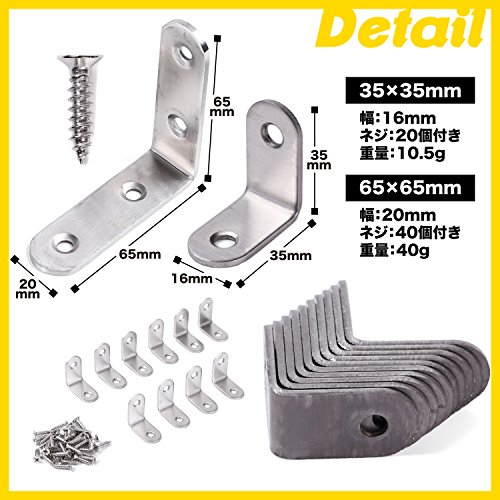 [スプレンノ] ステンレス L字 アングルブラケット 10個 セット ネジ付き 転倒防止 補強 金具 (6号_65mm)