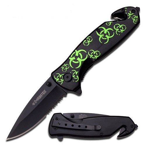 マスターカトラリーz-hunter 4.75-inchフォルダナイフとアルミニウムハンドル、ブラック/グリーン