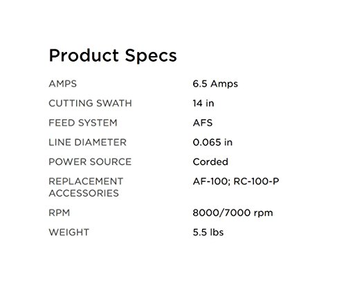 14" 6.5 Amp String Trimmer and Edger. From Black & Decker, AFS automatic feed system ensures continual work without bumping or having to stop to feed the spool. 2-in-1 easy conversion wheeled edging- just rotate to convert from trimmer to edger. PowerDrive Transmission" prevents bogging down in heavy grass and weeds. Lightweight ergonomic design with adjustable height and pivoting handle positions gives maximum comfort and control. The 6.5 amp motor and high torque transmission provide maximum performance when trimming through the toughest weeds, grass and overgrowth. It features Smart Edge mode for more control and accuracy and for straighter and cleaner edging results. Includes Trimmer/Edger, AF100, Auxilliary Handle and Guard. Used for trimming grass in hard to reach areas where mowers cannot reach and for maintenance edging along hard surfaces. Orange with Black