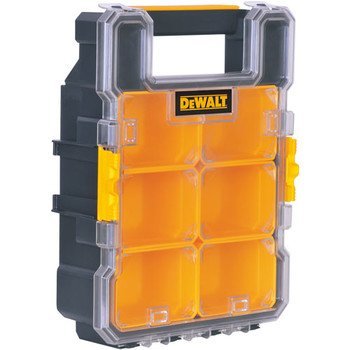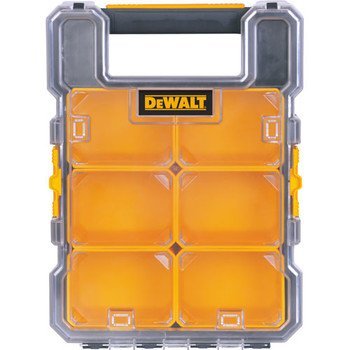 Dewalt, Mid Size Pro Organizer, Product Features Polycarbonate Lid For Impact Resistance & Visibility Of Small Parts & Tools, Unique Lid Design Secures Cups In Place When Closed, Removable Cups For Customized Storage Of Small Parts & Tools, Side Latches For Secure Stacking & Transportation & Comfortable Grip, Water Seal For Protection Of Tools & Parts.