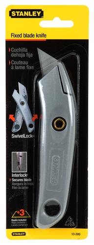 STANLEY 10 – 399 6インチのハンドルswivel-lock固定刃ナイフ。組み合わせのプッシュ・ボタンのswivel-lockハンドル(なくてもすばやく刃変更を提供するドライバーの正刃の保存、固定刃ユーティリティナイフには、起伏のあるハンドルは完全に手の快適さとコントロールが配置されています。は、以下の3つの# 11 – 921 heavy dutyユーティリティーのブレードです。6インチのハンドル長さが表示されます。カード付。