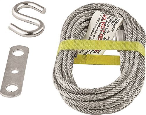 For Overhead Sectional Wood And Steel Garage Doors Up To 7 Ft High X 18 Ft Wide With Extension Spring. Also Recommended For Use On Garage Doors Requiring Four Extension Spring. Attaches Between Bottom Lift Bracket And Extension Spring For Up And Down Operation Of Garage Door. For overhead sectional wood and steel garage doors up to 7' high x 18' wide with extension springs. Also recommended for use on garage doors requiring four extension springs. Attaches between bottom lift bracket and extension spring(s) for up and down operation of garage door. Heavy duty 7 x 7 - 5/32" aircraft cable construction. One end looped and ferruled, the other end fusion cut. With a joiner clip and an "S" hook.