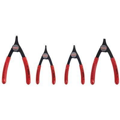 Ring range: External (Shaft) 1/4-inch- 2-inch; Internal (Bore) 3/8-inch- 2. Stanley J360C Proto 4 Piece Convertible Retaining Ring Pliers Set Design permits quick change-over to work internal or external rings. Pliers have no screws to tighten. Pliers have a return spring designed to reduce fatigue and facilitate operation. Pliers have air cushioned grips which spreads loads across the hand increasing comfort. Ring range: External (Shaft) 1/4-inch- 2-inch; Internal (Bore) 3/8-inch- 2. Proto 4Piece Convertible Retaining Ring Pliers Set Includes the following items: J399L, J371L, J385L, J376L.