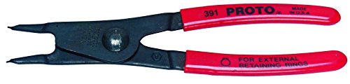 Stanley J391 Proto Retaining Ring Pliers External - 6-1/8-inch Used with External Retaining Rings. Fixed tips are precision formed and induction hardened for accurate fit and long wear. .038 Tip size.