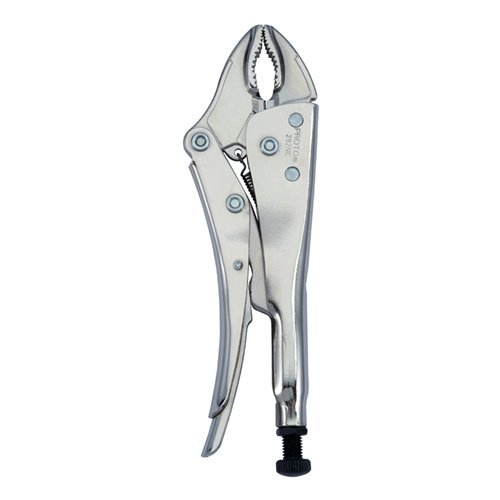 Can hold rounded objects. Stanley J292NC Proto Nickel Chrome Locking Pliers - Curved Jaw 9-1/4-inch High tensile strength micro alloy steel. Long slim jaw design. Curved section. Pliers can reach deep into recessed areas. Can hold rounded objects. Great for holding, placing and extracting pieces in awkward areas, engines, etc.
