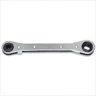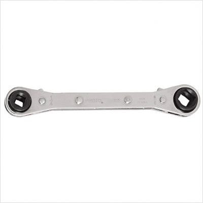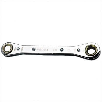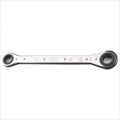 The wrench self-aligns with the fastener.. FEATURES:•Full polish finish provides corrosion resistance and easy to clean surfaces. •Built in retaining ring in each ratchet wheel adds speed and convenience for great accessibility. •Shorter length for access to confined workspaces. •The wrench self-aligns with the fastener. •12 point box end allows for fine indexing. •Fits 4, 6 and 12 point fasteners.