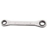 The wrench self-aligns with the fastener.. 1195M-A Model Code: AA (part# 1195M-A) This item features: -No. of Points: 12. -Opening Type: Box/Box. -Head Thickness: 10.300 mm, 12.700 mm. -Handle Type: Flat. -Material: Forged Alloy Steel. -Finish: Chrome. -Measuring System: Metric. -Type: Ratchet Box End Wrench. -Price is for 1 Each. Len. = Overall Length Len. = Overall Length Model CodeModel Description AAOpening Size:15 mm, 17 mm, Head Width:33 mm, 37 mm, Overall Length:206 mm, Wt.:191 g ABOpening Size:16 mm, 18 mm, Head Width:33 mm, 37 mm, Overall Length:206 mm, Wt.:259 g ACOpening Size:19 mm, 21 mm, Head Width:36 mm, 40 mm, Overall Length:235 mm, Wt.:295 g