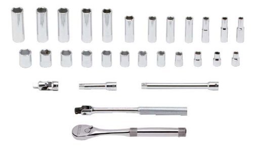 Stanley J52220XL Proto 3/8-inch Drive 29 Piece Metric Combination Socket Set - 6 Point Proto 6 Point Sockets are ideal for use on stubborn or damaged fasteners and also on fasteners made from soft materials. The Torque Plus design is a high performance drive configuration which allows for quick and easy socket engagement to the fastener flats, not the corners. The Torque Plus configuration employs a radius-corner design, shifting contact area and stress away from the fastener corners and distributing contact stresses over a large area of the socket, minimizing slippage. The Torque Plus internal design minimizes fastener rounding, helps to extend fastener life and allows the user to more easily turn worn, rounded, or rusted fasteners. Proto 3/8" Drive 29 Piece Metric Socket Set with Premium Ratchet - 12 Point Includes the following items: J5008MH, J5009MH, J5010MH, J5011MH, J5012MH, J5013MH, J5014MH, J5015MH, J5016MH, J5017MH, J5018MH, J5019MH, J5208MH, J5209MH, J5210MH, J5211MH, J5212MH, J5213MH, J5214MH, J5215MH, J5216MH, J5217MH, J5218MH, J5219MH, J5260, J5260-06, J5265, J5270A, JBM1106, J5249XL.