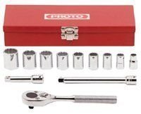 Set Includes: 3/8", 7/16", 1/2", 9/16", 5/8", 11/16", 3/4", 13/16", and 7/8" Sockets, Ratchet, 2 Extentions and Set Box, Helps minimize fastener rounding and extends fastener life, Turns worn, rounded and rusted fasteners more easily, Engages to the fastener flats, not the corners, Minimizes slippage