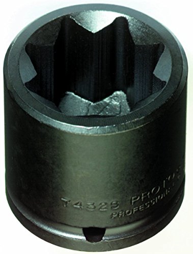 Impact sockets are used wherever powered drive tools are used to install or remove fasteners. Stanley J7426S Proto 1/2-inch Drive Impact Socket 13/16-inch - 8 Point Drive end chamfer and four detents help provide quick positive engagement with drive tool on any of the socket drive walls. Tight tolerances for snug fit on fastener. Large clearance holes, concentric opening and nut end chamfer make it easy to position socket on fasteners. Made from high-strength steel to help minimize wall thickness and provide access to fasteners in recesses and where nuts and bolts protrude. Impact sockets are used wherever powered drive tools are used to install or remove fasteners. Impact sockets are designed to withstand higher torque and force associated with impact tools in repetitive application. Proto 8 Point Impact Sockets are ideal for use on stubborn or damaged fasteners and also on fasteners made from soft materials. The TorquePlus design is a high performance drive configuration which allows for quick and easy socket engagement to the fastener flats, not the corners. The TorquePlus configuration employs a radius-corner design, shifting contact area and stress away from the fastener corners and distributing contact stresses over a large area of the socket, minimizing slippage. The TorquePlus internal design minimizes fastener rounding, helps to extend fastener life and allows the user to more easily turn worn, rounded, or rusted fasteners. Socket size stamped on tool for easy identification. Side locking hole.