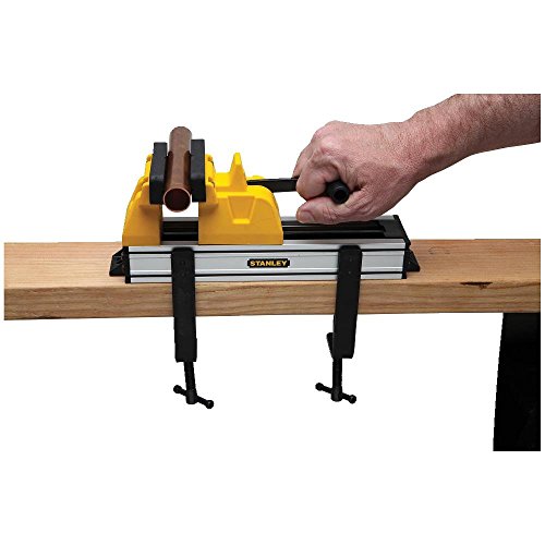 The Stanley STHT83179 Quick Vise is ideal for DIY and hobbyist projects. Rather than a traditional hand crank, the quick vise utilizes a slide for quick, easy positioning and a lever for tightening. Two built in screw threads securely hold the vise to work surfaces and provide easy repositioning. A 4.5 inch jaw slides to open and close quickly and weighing only 3.5 pounds, the quick vise is also easy to transport. Removable non-marring pads cover the heavy-duty steel jaws to help prevent damage to the work surface. This vise is great for cutting, gluing, clamping, and carving.