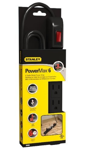 This Stanley all purpose power strip features 6 grounded outlets, built-in circuit breaker, and easy on/off switch.