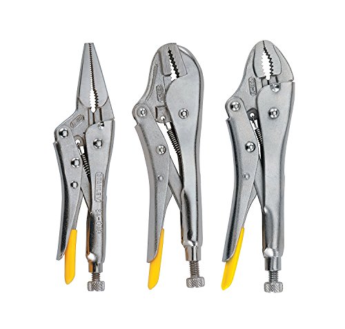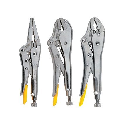 Product Description Locking Plier Set ( 3-Piece) From the Manufacturer The Stanley Locking Pliers Set includes 1 Straight Jaw, 1 Curved Jaw, and one Long Nose locking pliers. The have induction hardened jaws that last longer and grip better than non-induction hardened jaws. The adjustment screw provides the ideal holding pressure for precision control and they have a built-in wire cutter. They are made of forged steel that is strong and durable for a long life. They meet ANSI specifications and are backed by a limited lifetime warranty.