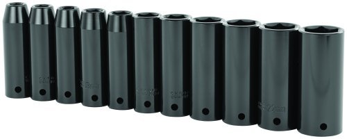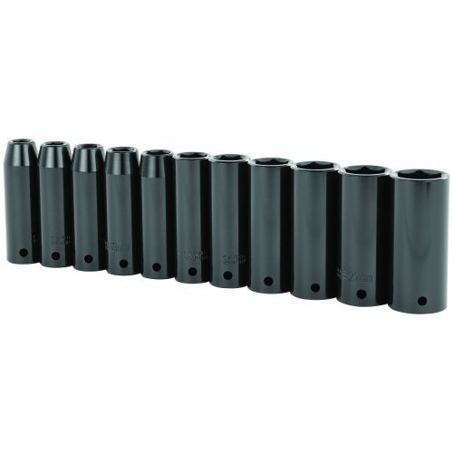 Product Description Includes (11) 1/2 in. Dr. Deep Impact Sockets - 10mm, 11mm, 12mm, 13mm, 14mm, 16mm, 17mm, 19mm, 21mm, 22mm, 24mm From the Manufacturer 6 pt. Socket design. Chrome vanadium steel construction. Black powder coat industrial finish. Includes Case/Organizer with handle. Includes: 10, 11, 12, 13, 14, 16, 21, 22, 24mm.
