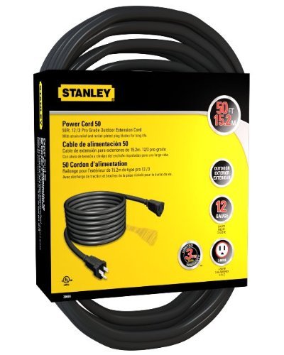 The Stanley Pro Cord 50 is a 1 grounded outlet 50ft outdoor extension cord. The color is black. Rated: 125V/15A/1875W.