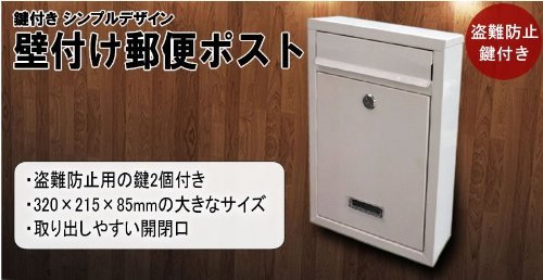 Stardust シンプル デザイン 郵便 ポスト ( ホワイト ) 壁 取付 盗難 防止 鍵 付き SD-SPOST-WH