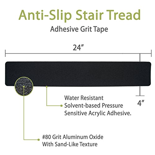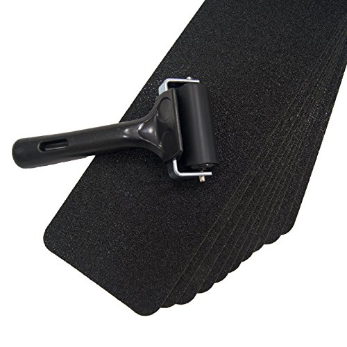 Steady Treads – のセットPVCフリー、ノンスリップ粘着階段踏み板and Handyインストールローラー 10 Quantity - 4x24 Inch / Roller ST-10-BK-424-R