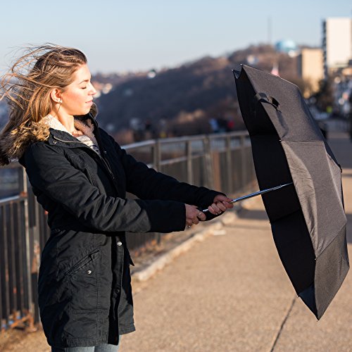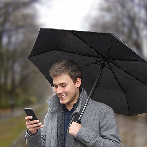 突風が吹いて裏返ってしまい、傘をすてなければならないことがあったなら、StormProofの「壊れない」旅行用傘の良さが分かるでしょう。自動、コンパクト、超軽量。必要なものはすべてそろっています。ぬれずに安全な状態が保護されます。大人を保護するのに十分なキャノピーは、直径96.5cmで、男女ともにご利用できき、何とでも一緒に持ち運びできます。コンパクトで持ち運びに便利な傘は大型ですが、28cmに小さく折りたたむことができます。どこへでも持ち運び可能なので、突然の土砂降りに出くわすことはありません。車の小物入れやバックパック、ブリーフケース、ジムバック、財布、トートバック、さらにはコートのポケットにも収まります。たった13オンスの重量なので、持ち運びしていることに気づかないことさえあります。両手を使って開いていた昔の傘のように、多くの人は片手で開く傘には気もとめませんが、自動で瞬時に開き閉めることもできる魔法のボタンについては明らかに初耳でしょう。武士のように、雨が襲ってくる直前に傘を数秒で取り出して開くことができます。耐久性のある構造シャフトとフレームは、黒色でコーティング加工された金属で作られており、繊維ガラス製のリブは190Tポンジー織と呼ばれる柔らかい布で作られている8つのキャノピーパネルを支えています。使わない時に傘を保護するため、簡単にすばやく出し入れできます。Stormproofの軽量で「壊れない」防風型自動傘を今すぐ入手して雨風を笑い飛ばしましょう。