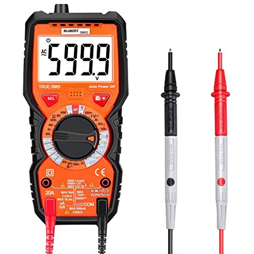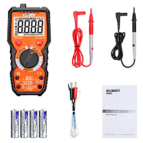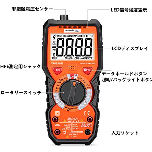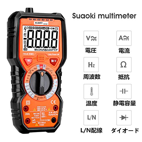 suaoki マルチメーター デジタルテスター 6000カウント 過負荷保護 非接触電圧検出 LED信号強度表示 電流 電圧 抵抗 静電容量 周波数 温度 導通テスター