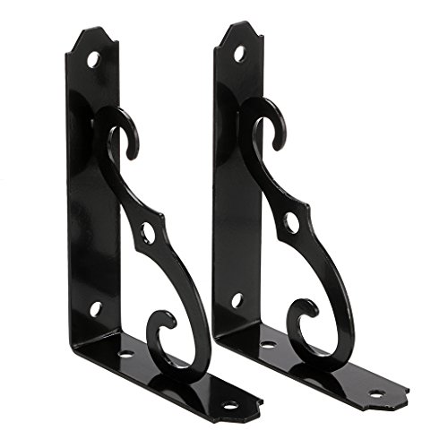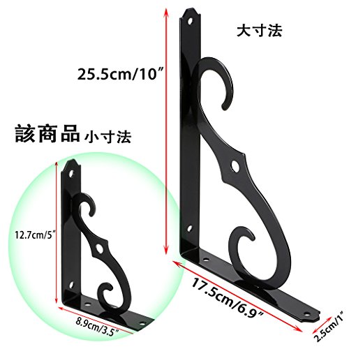 Sumnacon 2個セット 棚受け ブラケット アイアン アンティーク 木の板 シェルフ ブラケット 棚受け 金具 l型 おしゃれ 12.7*8.9cm(ブラック) ((黒)12.7*8.9cm)