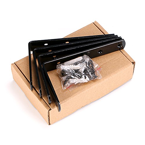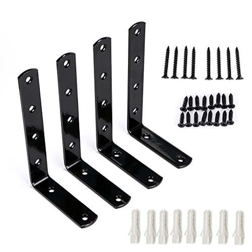 Sumnacon 4個セット l字 棚受け 金具 ステンレス コーナーブレース アイアン 木の板 シェルフ ブラケット 棚受け 支え おしゃれ ネジ付け(ブラック)