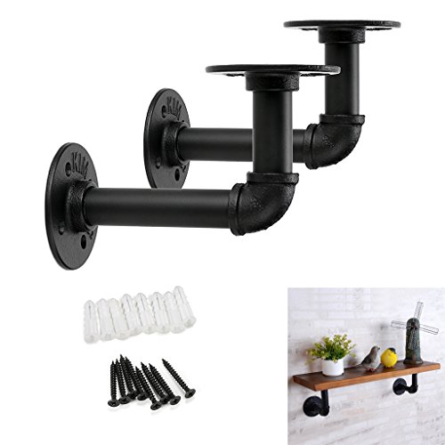 Sumnacon 2本セット 棚受け 金具 アンティーク 工業風 アイアン 木の板 ブラケット 棚 支え L型 ネジ入り 15*10cm (ブラック)