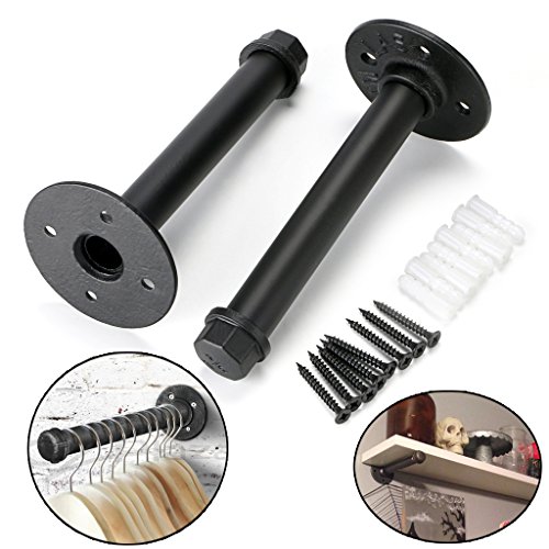Sumnacon 2本セット 棚受け 金具 アンティーク 工業風 アイアン 木の板 ブラケット 棚 支え ネジ入り 19.5cm (ブラック)