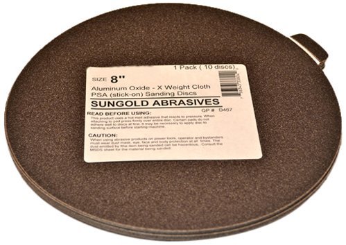 Sungold 8-Inch Cloth Discs for metal platen stationary sanders. X weight backing for extra strength and tear resistant. Conveniently packed individually with a liner for extra long storage life.