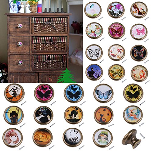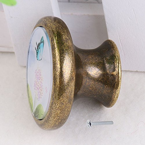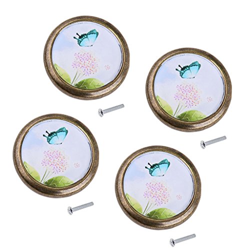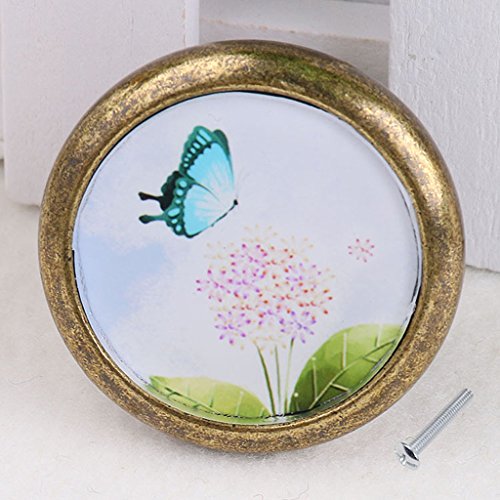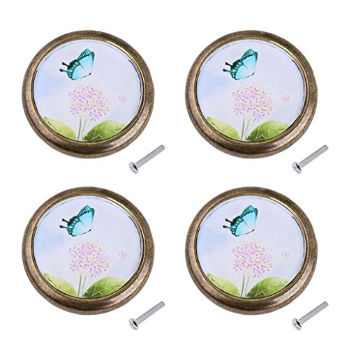 SunniMix 4個 ラウンド キャビネット ドア 引き出し 取っ手ノブ ハンドル プルノブ タンポポと蝶パターン 部屋 装飾