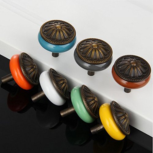SunniMix 陶器製 家具 取っ手 ラウンド キャビネット プルノブ ドアハンドル 多色選べる - グレー